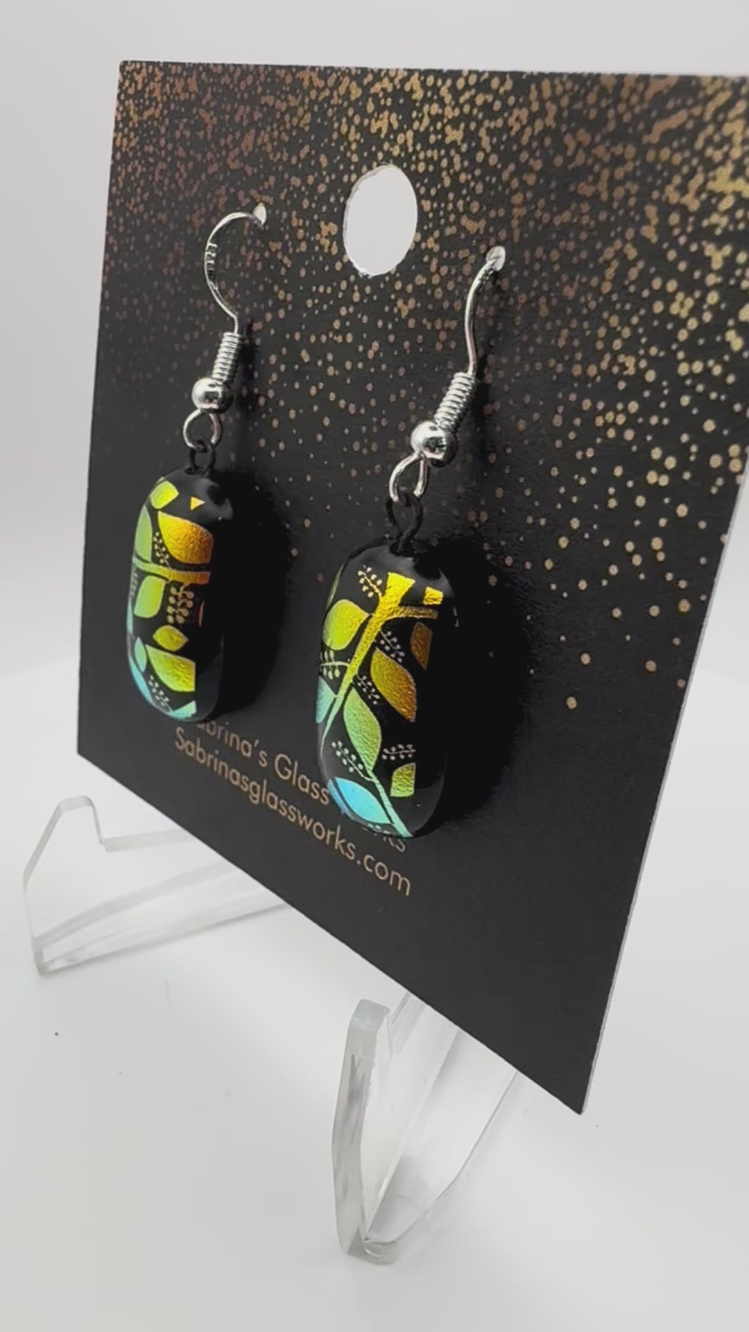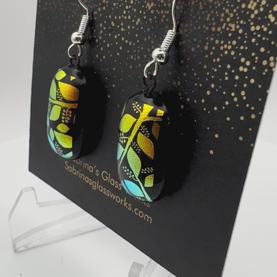 Add a burst of color and light to your look with these handcrafted dichroic glass earrings. Each pair is uniquely designed to capture vibrant colors and mesmerizing patterns that shift beautifully in the light.