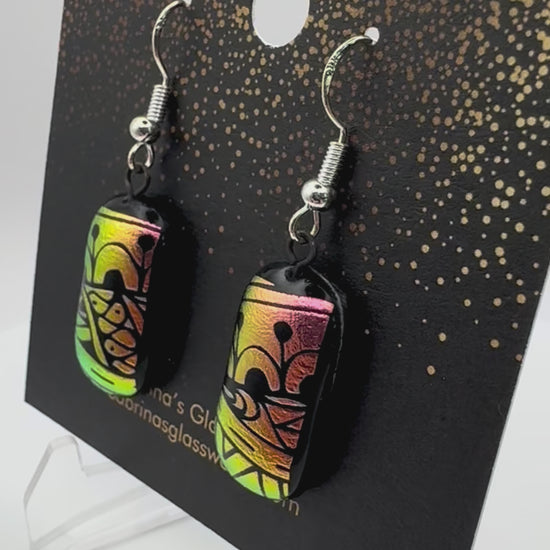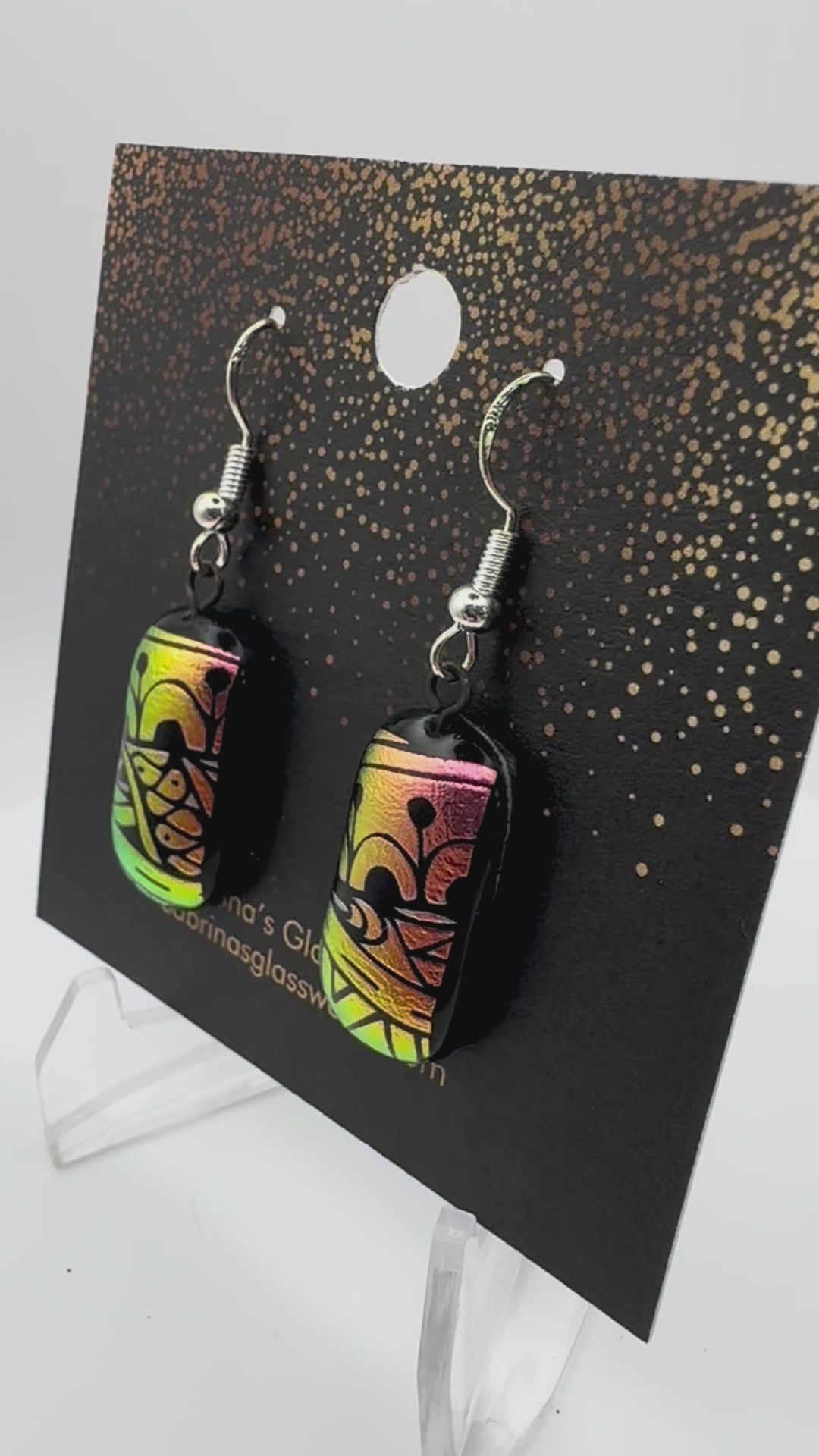 Add a burst of color and light to your look with these handcrafted dichroic glass earrings. Each pair is uniquely designed to capture vibrant colors and mesmerizing patterns that shift beautifully in the light.