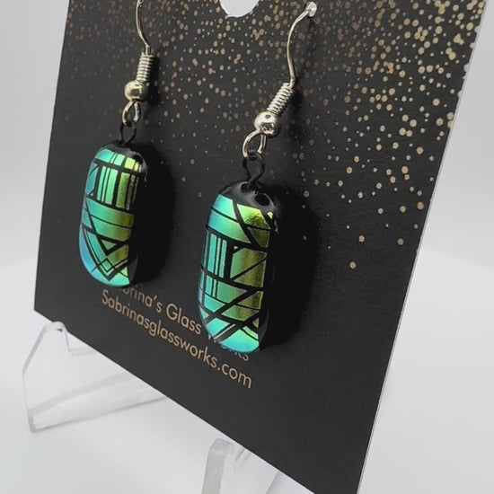 Add a burst of color and light to your look with these handcrafted dichroic glass earrings. Each pair is uniquely designed to capture vibrant colors and mesmerizing patterns that shift beautifully in the light.