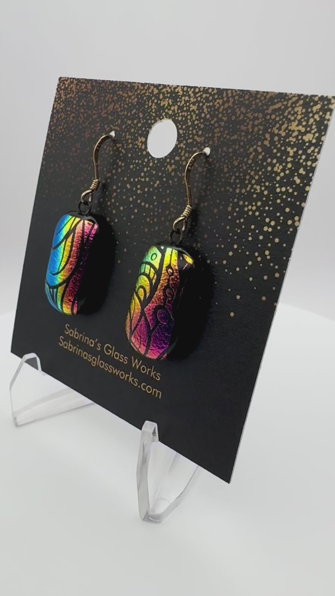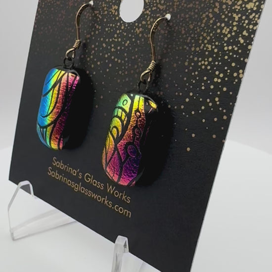 Add a burst of color and light to your look with these handcrafted dichroic glass earrings. Each pair is uniquely designed to capture vibrant colors and mesmerizing patterns that shift beautifully in the light.