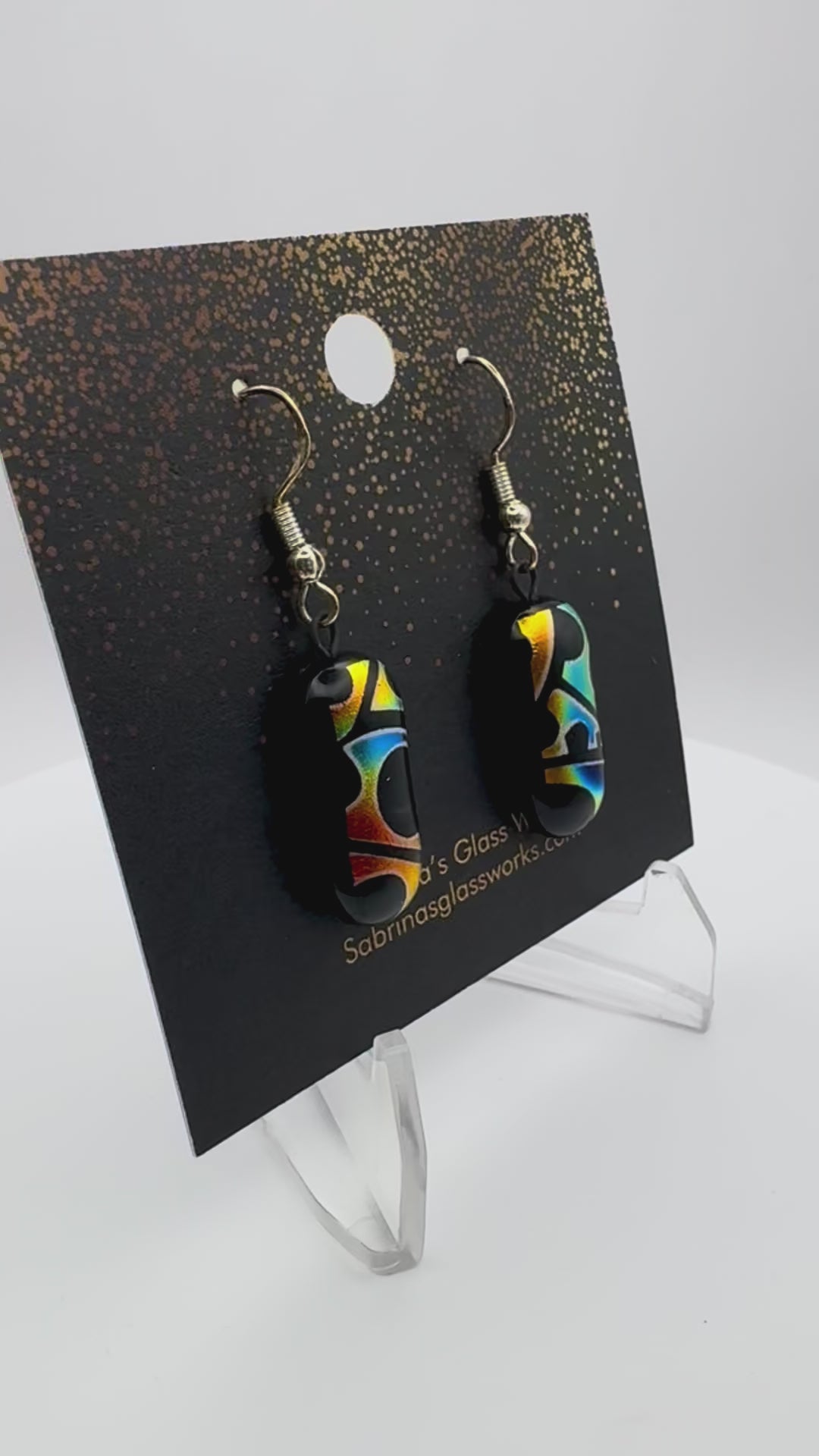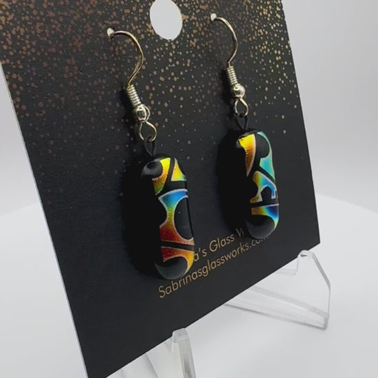 Add a burst of color and light to your look with these handcrafted dichroic glass earrings. Each pair is uniquely designed to capture vibrant colors and mesmerizing patterns that shift beautifully in the light.