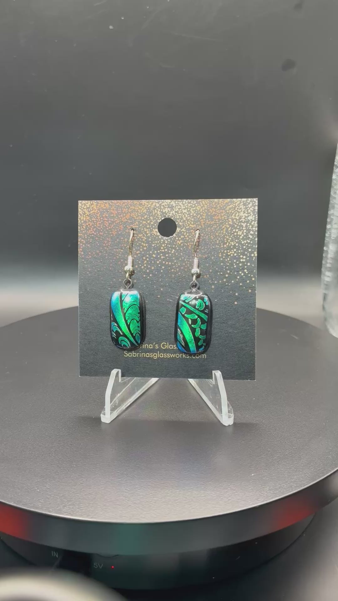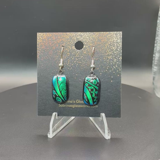 410-Teal and black Dichroic glass earrings