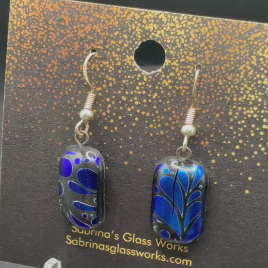 451- Blue, black dichroic earrings