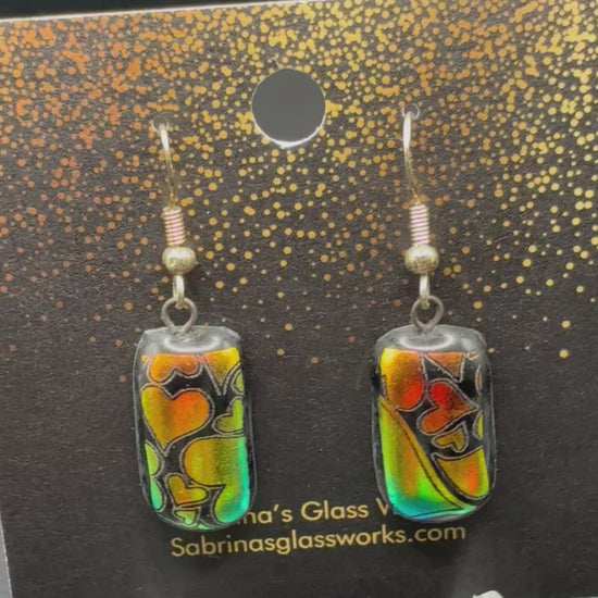 453 - Multiple color heart Dichroic earrings