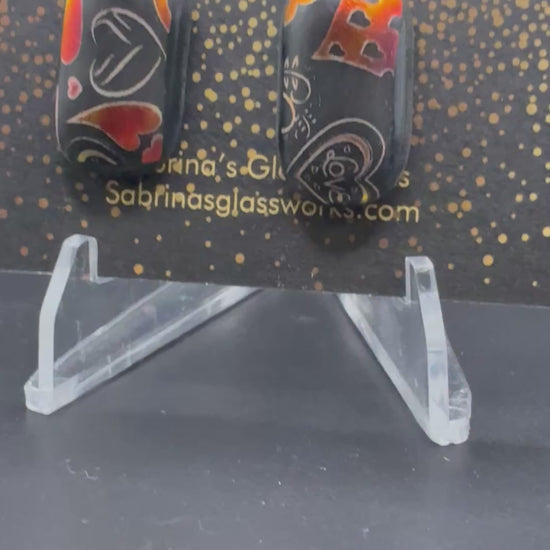485-Red and black heart Dichroic glass earrings