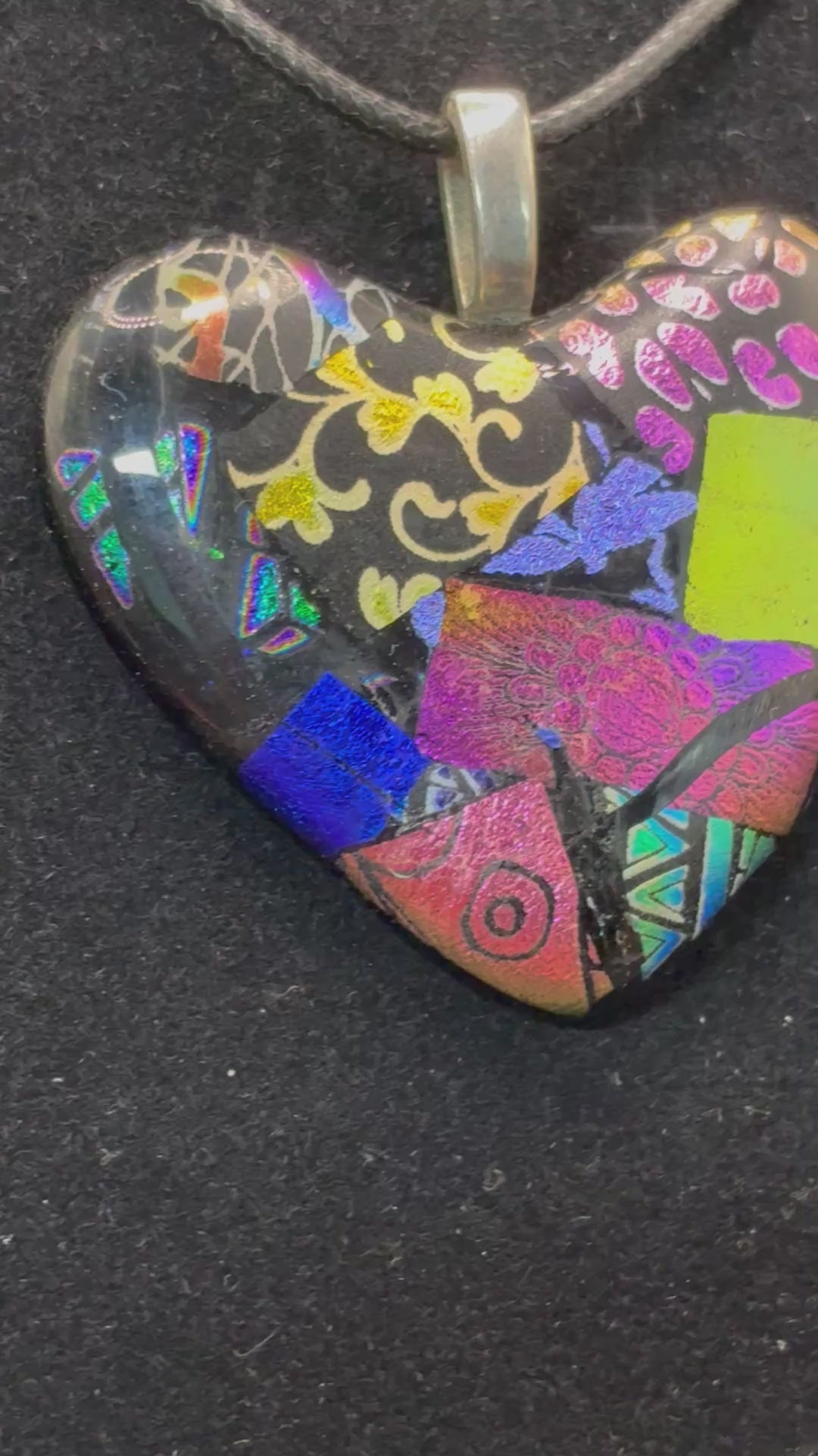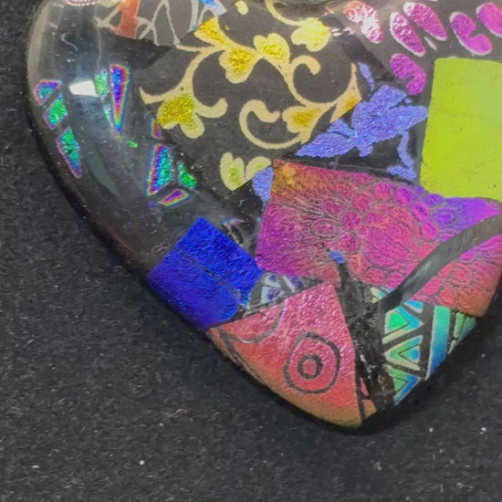 810- Multicolor Dichroic Fused glass heart PENDANT