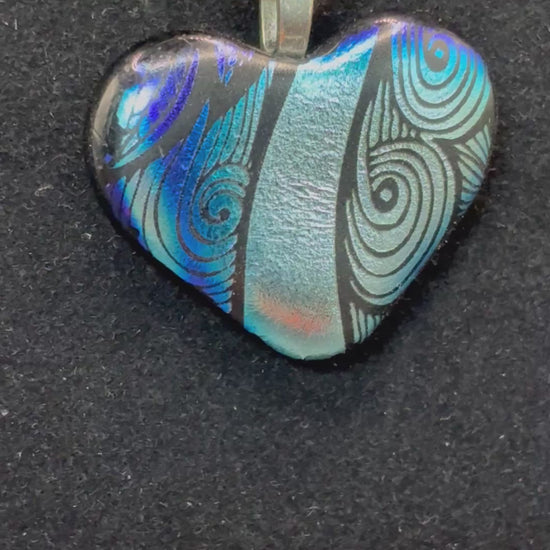 Sabrina's Dichroic Glass Heart-shape Pendant Collection. Add a burst of color and light to your look with these handcrafted dichroic glass pendants. Each one is uniquely designed to capture vibrant colors and mesmerizing patterns that shift beautifully in the light. Handmade with care and passion to give you wearable art you'll love.