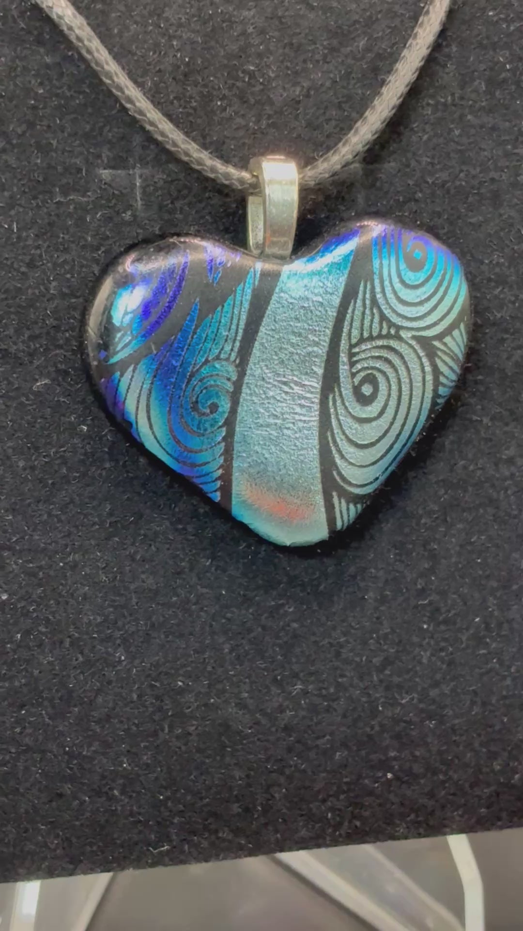 902- Blue/silver Dichroic fused glass heart PENDANT