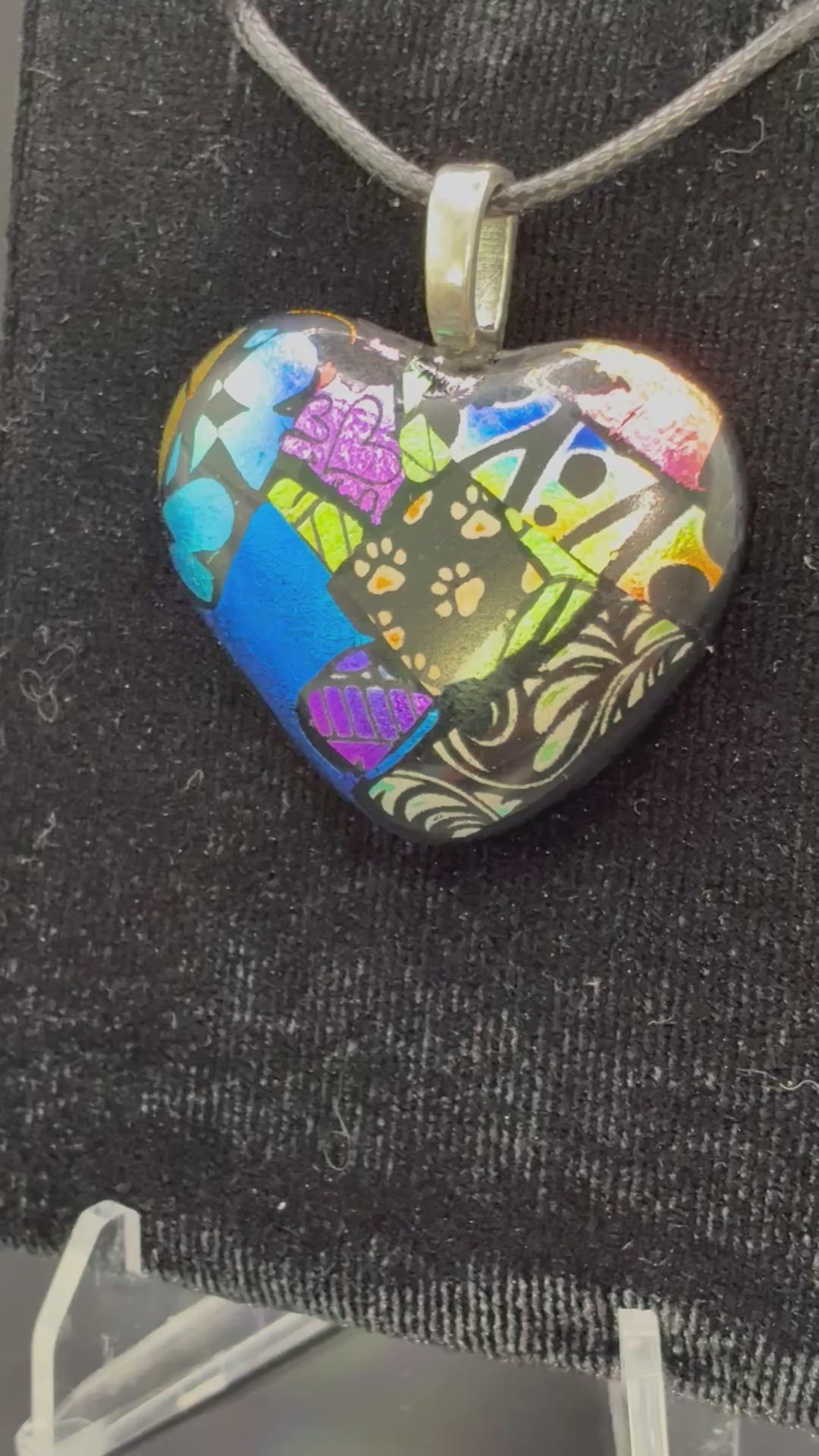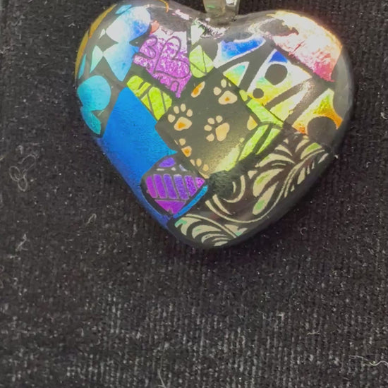 903-Multicolor Dichroic Fused glass heart PENDANT