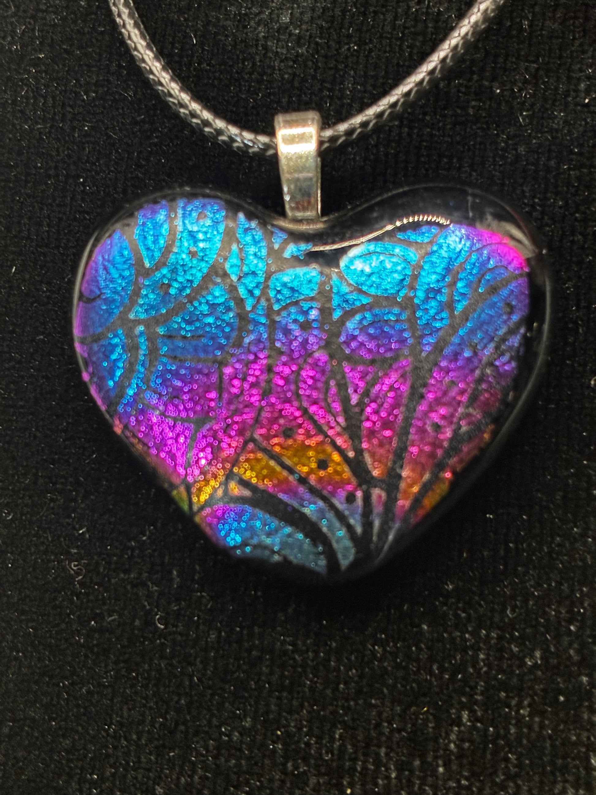 Sabrina's Dichroic Glass Heart-shape Pendant Collection. Add a burst of color and light to your look with these handcrafted dichroic glass pendants. Each one is uniquely designed to capture vibrant colors and mesmerizing patterns that shift beautifully in the light. Handmade with care and passion to give you wearable art you'll love!