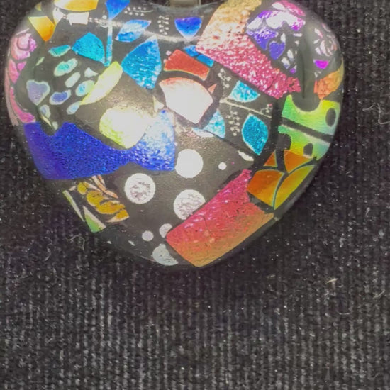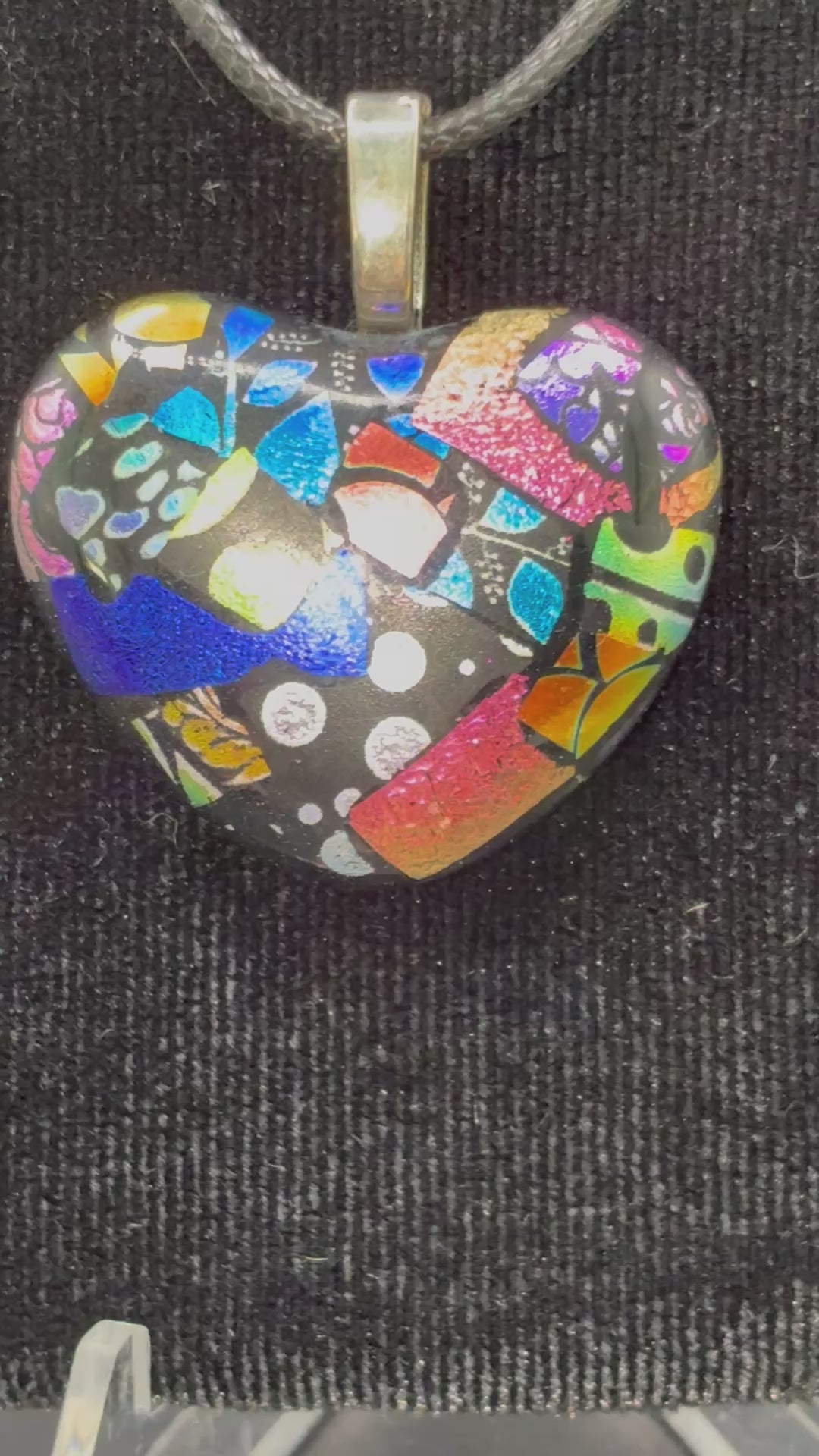Sabrina's Dichroic Glass Heart-shape Pendant Collection. Add a burst of color and light to your look with these handcrafted dichroic glass pendants. Each one is uniquely designed to capture vibrant colors and mesmerizing patterns that shift beautifully in the light. Handmade with care and passion to give you wearable art you'll love.