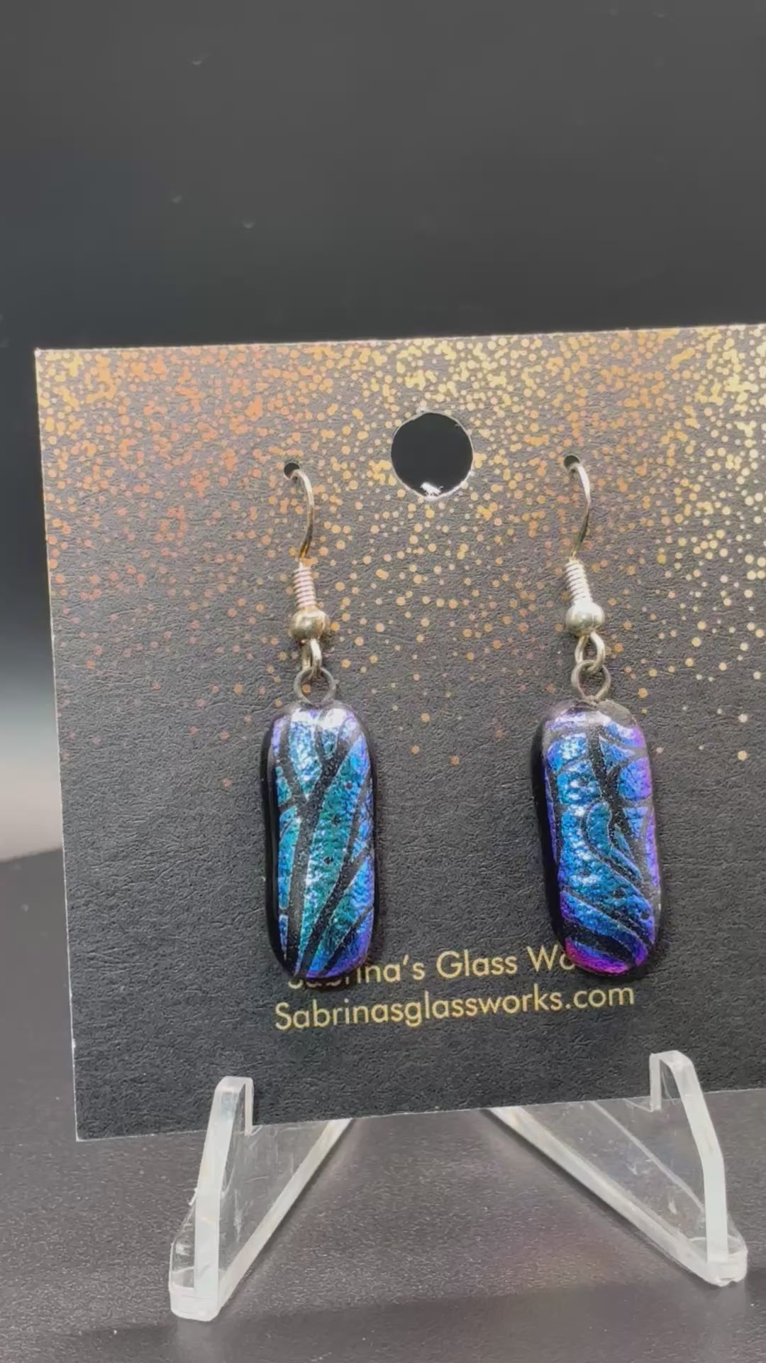 Each pair of Earrings hang from Sterling silver French hooks. Colors my vary due to the nature of Dichroic glass.